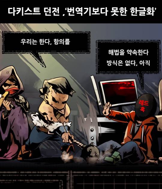 [게임 만평] '번역기보다 못한 한글화'로 유저 신뢰 박살 낸 다키스트 던전