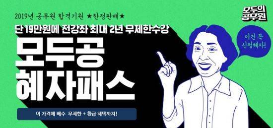 공무원시험 전문 인강 브랜드 모두의공무원이 공시생들의 수강료 부담을 덜기 위힌 '모두공 혜자패스' 상품을 출시했다고 밝혔다.