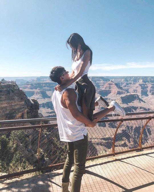 사진 속 지소연과 송재희 부부는 미국의 그랜드캐니언을 찾았다. 송재희는 탄탄한 근육을 과시하며 두 손으로 지소연의 무릎을 잡고 가슴팍까지 들어올리고 있다. 지소연은 탄력 넘치는 S라인을 과시하며 송재희의 팔 위에서 균형을 잡고 있다. 한때 SNS에서 대단한 인기를 끌었던 커플 포즈다. 연애 시절 못지 않게 꿀케미가 돋보이는 두 사람의 애정이 달달하다.