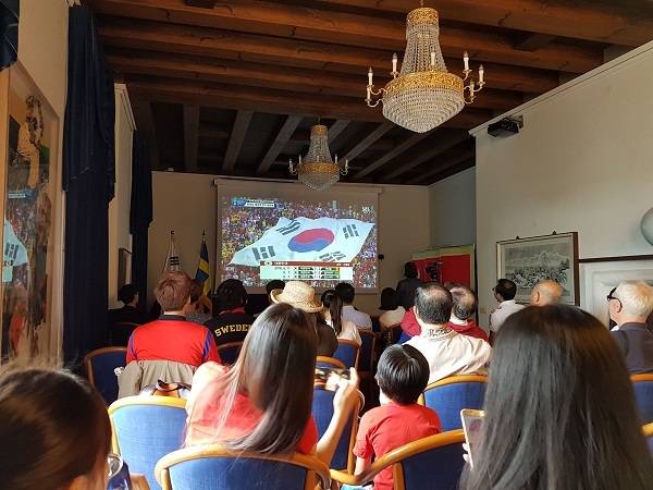 그러나, 그럼에도 불구하고 가장 인상적이었던 한 장면은 두 팀의 경기가 끝나고 한국의 패배가 확정된 후에도 스크린을 향해 박수를 보내는 교민들의 모습이었습니다. 이 자리에서 만난 임지표 재스웨덴한인회장은 이렇게 말하기도 했습니다.