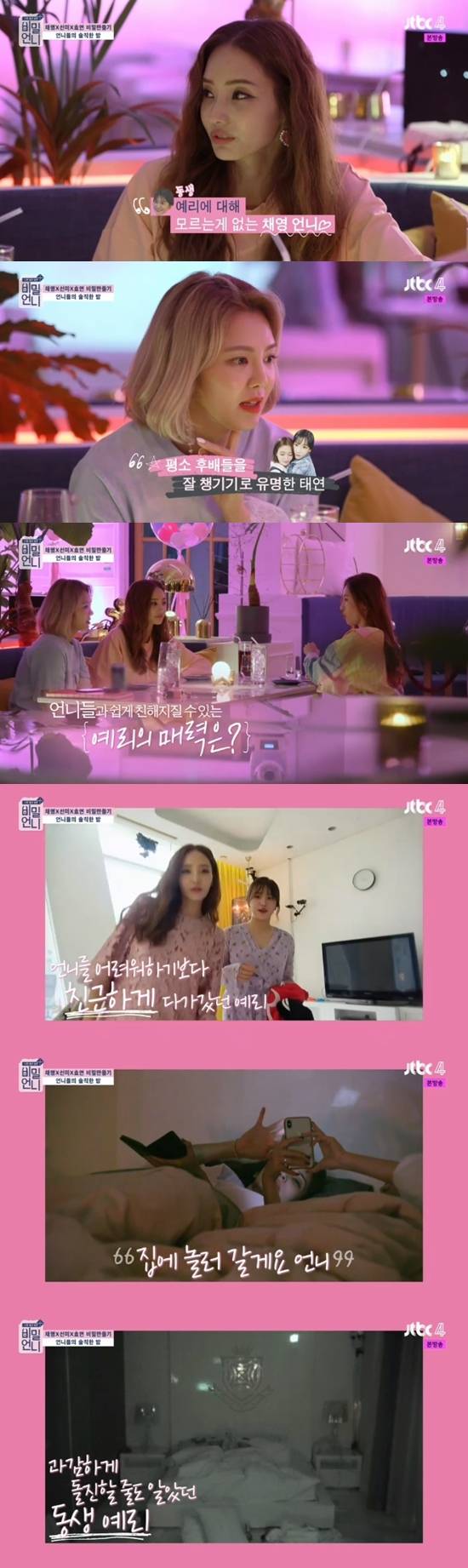 이날 한채영은 효연에게 "예리가 소녀시대 태연이랑 친하더라. 집에도 많이 놀러 간다고 하더라. 나이 차이가 나는데도 친해서 신기했다"고 말하며 비밀 동생에 대한 지식을 뽐냈다.
