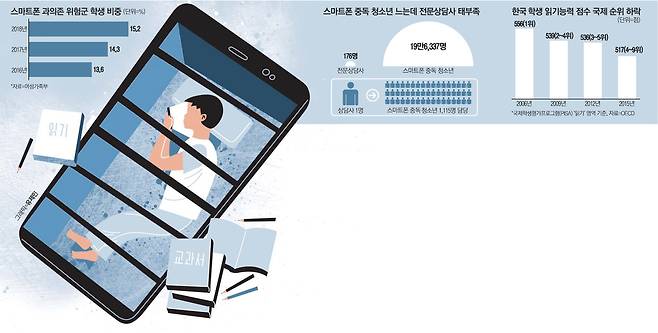 스마트폰 강국의 그늘에는 20만명에 달하는 스마트폰 중독 청소년이 허우적거리고 있다. 기상천외한 디지털 약어로 대화를 주고받는 데 익숙해진 청소년들이 책과 담을 쌓으면서 사고력 발달의 척도가 되는 읽기능력 국제순위는 곤두박질치고 있다. 중장기적인 국가경쟁력 추락으로 이어질 수 있는 학업성취도 리스크로 스마트폰 중독 문제가 수면 위로 떠오른 지 오래지만, 정작 교육당국은 '교육 민주주의'라는 미명 아래 전 세계적인 스마트폰 교육규제 강화 흐름을 외면한 채 일선 학교로 공을 떠넘기고 있다.
