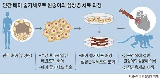 사람 배아줄기세포로 원숭이 심장병 고쳤다