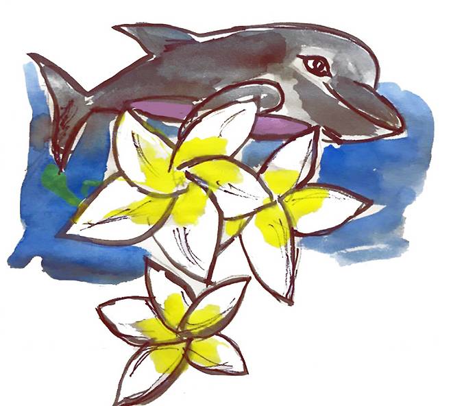 태평양 끝머리 하와이 섬. 돌고래의 또 다른 고향. 하와이만큼 꽃이 많이 피고 빽빽한 밀림을 유지하는 섬도 드물 것이다. 바닷가 모래밭엔 바다거북이 흔하지. 인파가 모인 곳엔 훌라춤 파티. 서핑도 하와이가 고향이다. 부서진 카누 조각을 붙들고 파도와 싸우던 청년이 있었지. 멋지게 일어서서 파도 굴을 빠져나오자 그 모습에 반한 인어공주. 청년의 손을 끌고 산호초 궁궐로 사라졌다지.