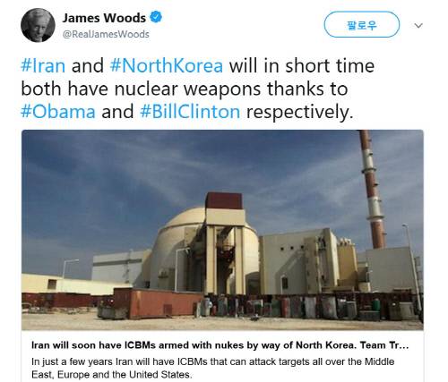 또한 제임스 우즈는 북한의 핵개발에 미온적으로 대처한 빌 클린턴과 버락 오마바 전임 대통령들을 신랄하게 비판해 오기도 했다.