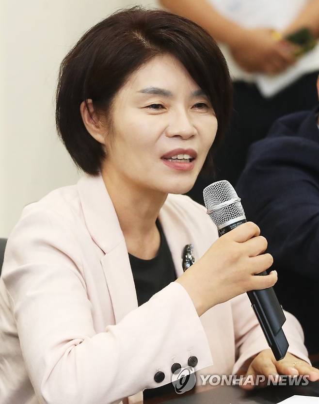 (성남=연합뉴스) 홍기원 기자 = 6일 오후 경기도 성남시 중원구 ㈜아이에스시(ISC)에서 열린 '더불어민주당 민생평화상황실 소득주도성장팀 일자리 현장 정책간담회'에서 팀장인 한정애 의원이 발언을 하고 있다. 2018.7.6