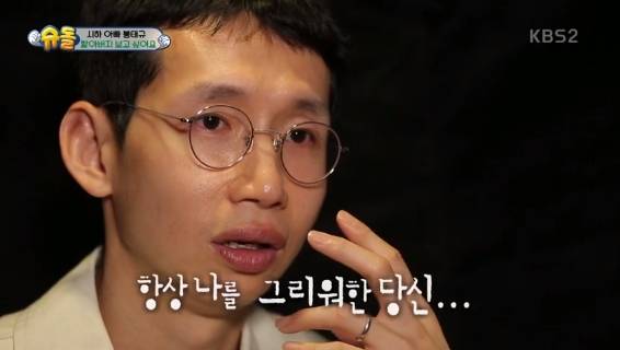 이어 "시하를 낳아보니까 얼마나 아버지의 마음을 헤아리지 못했나 생각이 들더라. 아버지 입장에서 아들을 바라보는 마음은 장난이 아니다"고 말하며 눈물을 보이기도 했다.(사진=KBS 2TV '해피선데이-슈퍼맨이 돌아왔다' 방송 캡처)
