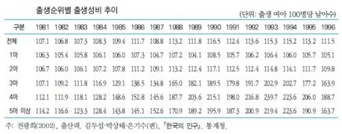아시아인구학회장인 김두섭 한양대 교수(사회학)는 “당시 출생성비의 불균형이 최근 혼인시장의 왜곡을 초래한 원인 중 하나로 작용했을 수 있다”고 설명했다.