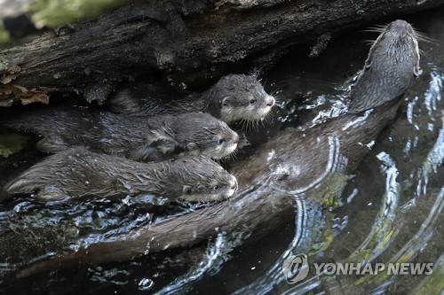 epa06882892 An undated handout photo made available by the Tiergarten Schoenbrunn zoo on 12 July 2017 shows Asian small-clawed otter triplets with a parent at the zoo in Vienna, Austria. According to the zoo, the triplets were born on 17 May 2018. EPA/Norbert Potensky HANDOUT HANDOUT EDITORIAL USE ONLY/NO SALES