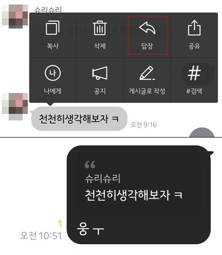 ◇ 놓치지 말고 답하자!… 말풍선 답글 달기