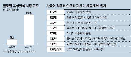 자연어 처리 기술자는 "언어를 기계가 학습한다는 것은 어느 정도 자료가 쌓여야 의미 있는 결과가 나오기 때문에 음성인식 기술 업력이 짧은 기업들이 딥러닝 기술을 확보해도 인식률이 떨어질 수밖에 없다"고 했다. 이 관계자는 "요즘에는 (걸그룹) '트와이스'라고 하면 걸그룹을 뜻하지만 과거 데이터를 학습한 기계는 '두 배'로 알아듣는다"며 "기 처리 기술은 음성 '인식' 단계에서 완성도가 떨어지기 때문에 제대로 된 서비스를 할 수 없다"고 했다. 예를 들어 세종 말뭉치를 구축한 '국립국어원 언어정보나눔터'에서 '먹었니'를 검색하면 2건만 검색된다. 한 개발자는 "통상 10억어절 이상은 돼야 딥러닝을 적용할 수 있는데 2건으로는 '먹었니'를 기계에 학습시킬 수 없다"고 했다.