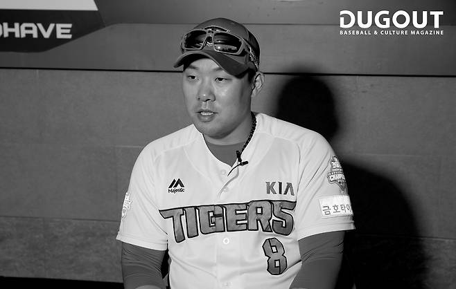 2009년 KIA에 입단했을 때 받은 번호인데 정말 특별한 의미는 없다. 신인들은 프로에 처음 들어올 때 선택할 수 있는 번호의 폭이 넓지 않다. 선배들이 쓰지 않는 번호 중에서 골라야 한다. 그런데 당시에 KIA 수석코치이셨던 황병일 코치님께서 다른 선수들이 번호를 고르기 전에 8번을 쓰라고 추천해주셨다. 개인적으로 뒤에 있는 번호보다는 깔끔한 앞번호를 좋아해서 기쁜 마음으로 선택했다. 그러고 여차여차 하다 보니 지금까지 쓰고 있는데 이제는 특별한 번호가 된 것 같다. (웃음)