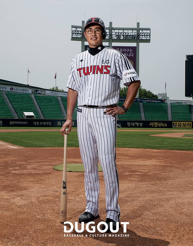 롤모델 누구 딱 한 명으로 정해둔 것은 아니었어요. 학교 다닐 때는 유쾌하고. 팀의 리더가 되어주는 선배들을 롤모델로 삼았어요. LG에 와서는 박용택 선배였어요. 처음 뵀을 때는 제가 입단 전에 가지고 있던 이미지와 달랐어요. 학교 다닐 때는 야구를 타고난 천재 같아 보였거든요. 열심히 안 해도 그냥 잘하는 그런 선수요. 그런데 입단해서 보니까 전혀 아니었어요, 항상 노력 많이 하시고, 배울 게 정말 많은 선배예요.
