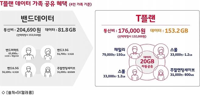 SK텔레콤(대표 박정호)은 온 가족의 데이터를 늘리고 요금을 낮추는 신규 요금제 'T플랜'을 출시한다고 18일 발표했다.