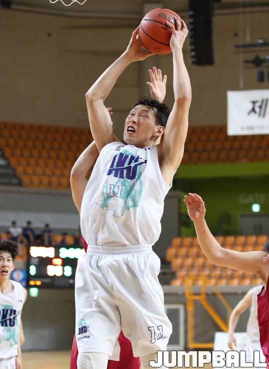 18일 경북 상주실내체육관에서 열린 제34회 MBC배 전국대학농구대회 6강전 두 번째 경기, 단국대 김영현이 집중 수비를 뚫고 리바운드를 잡아내고 있다. 2018-07-18 한필상(murdock@jumpball.co.kr)