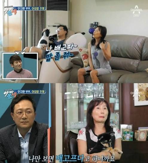이날 안지환은 식사 준비를 하는 아내에게 계속 투정을 늘어놓는 철없는 남편의 모습을 보여줬다.