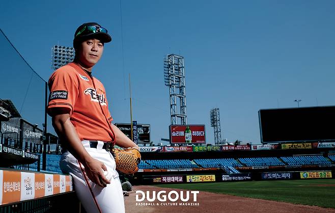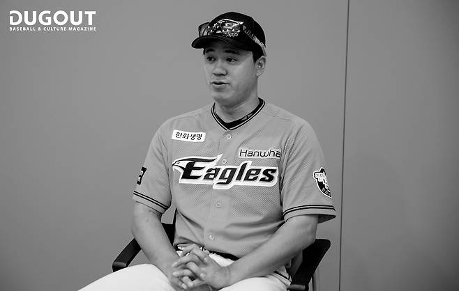 안녕하세요. 한화 이글스 투수 서균입니다. <더그아웃 매거진>을 본 적도 있는데 제가 인터뷰를 하게 되니 긴장도 되고 뭔가 어색하네요. (웃음) 사진도 찍고 영상을 이렇게 찍는 것도 처음이어서 새로워요.