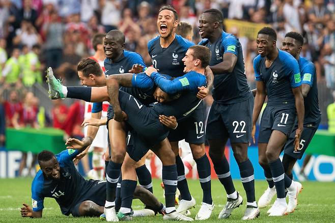 | ▲ 2018 러시아 월드컵 결승전 프랑스-크로아티아 경기 7월 16일 오전 0시(한국시각) 러시아 루즈니키 스타디움에서 벌어진 2018 FIFA(국제축구연맹) 월드컵 결승전 프랑스-크로아티아와의 경기에서 4-2로 이긴 프랑스 선수들이 기뻐하고 있다. |