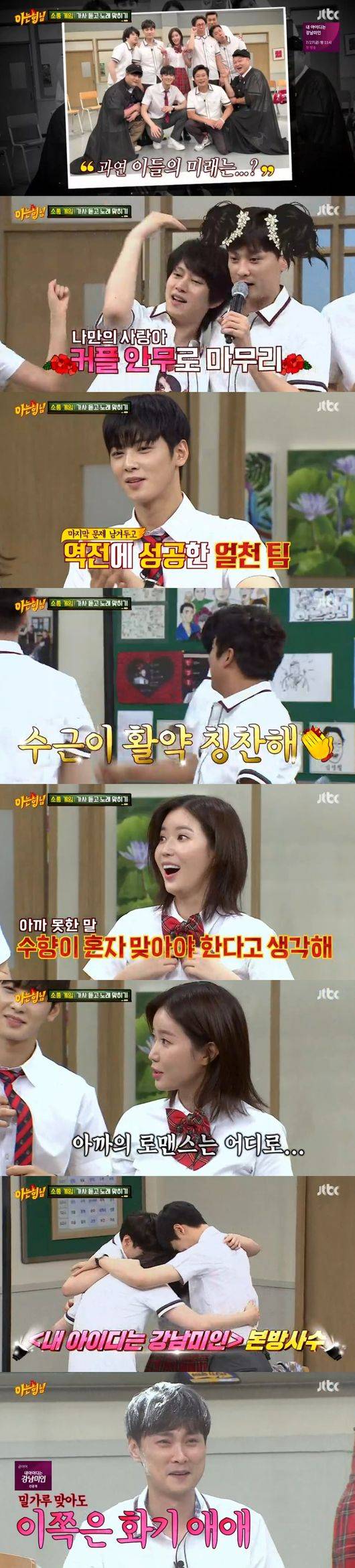 강호동, 김영철, 서정훈, 이수근, 이상민이 얼꽝팀에 합류했다. 박진감 넘치는 게임을 진행, 넘치는 예능감으로 시청자들의 배꼽을 훔쳤다. 게임 결과, 역전으로 얼굴천재팀이 승리하는 듯 했으나, 최종 승리자는 얼꽝팀이 됐다. 결국 밀가루를 뒤집어쓴 얼굴천재팀 모습이 웃음을 안겼다. 특히 임수향과 차은우는 얼굴천재는 덤 예능천재라는 수식어를 다시 쓰게 됐다. /ssu0818@osen.co.kr