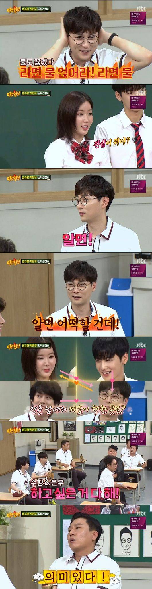 본격적으로 입학신청서를 시작했다. 수향은 희망짝꿍으로 민경훈을 선택, 진심을 알고 싶다고 했다. 민경훈은 "알면 어떻게 할 거냐"며 밀당했고, 앞에서 희철은 표정관리 안되는 모습을 보여 웃음을 안겼다. 이어 소원대로 경훈의 짝꿍이 됐고,희철은 "두 사람 너무 어색하다"며 묘한 핑크빛을 보였다. 민경훈은 제대로 수향의 얼굴을 쳐다보지 못했고, 수향이 얼굴을 경훈쪽으로 돌리자 얼굴이 귀까지 붉어져 묘한 러브라인을 보였다.