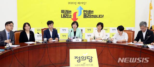 【서울=뉴시스】박영태 기자 = 23일 오전 서울 영등포구 여의도 국회에서 진행된 정의당 상무위원회에서 노회찬 원내대표가 불참한 가운데 이정미 대표가 발언하고 있다. 2018.07.23.
