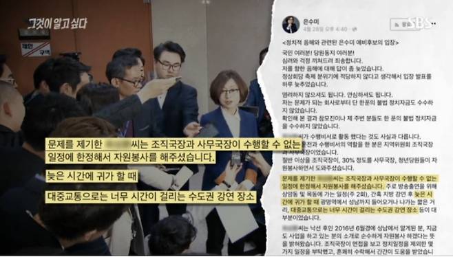 하지만 지난 지방 선거에서 은수미 시장(당시 후보)이 성남국제파로부터 차량을 제공 받았다는 의혹이 언론에 보도됐다. 이 PD는 "당시 '말도 안 되는 소리'라고 생각했던 이야기 속 인물들이 보도에 등장하기 시작하면서, 뒤통수 맞은 기분이 들었다"고 했다.