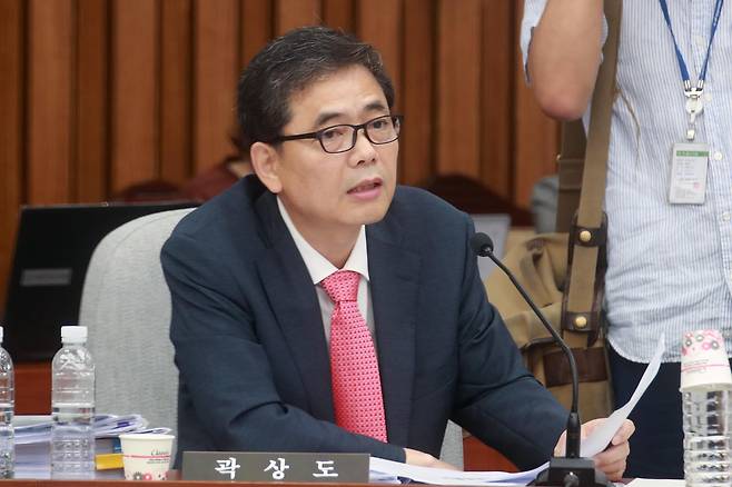 | ▲ 2017년 9월 13일, 곽상도 자유한국당 의원이 국회에서 열린 김명수 대법원장 후보자 인사청문회에 참석해 법원의 독립성과 개혁에 대한 견해를 질의하고 있다. |