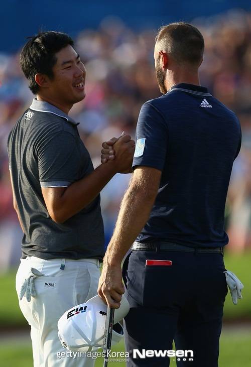 우승에 가까웠지만 아쉽게 공동 2위로 마무리한 안병훈은 운이 따른다면 이런 기회가 또 올 거라고 생각한다. 오늘 6번 홀과 16번 홀에서 운이 좋지 않았다. 내가 원하는 위치에 잘 올렸지만 그게 내가 원하는 대로 바운스 되지는 않았다. 우승을 하기 위해서 좋은 골프 플레이를 보여줘야 한다고 생각한다"고 말했다.(사진=더스틴 존슨과 인사 나누는 안병훈)