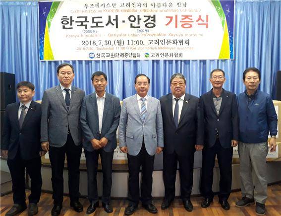 교총은 30일 우즈베키스탄 타슈켄트 고려인문화협회에서 '고려인 한국 도서 및 안경 보내기' 기증식을 열고 고려인 후손들에게 한글 서적과 안경을 지원했다.