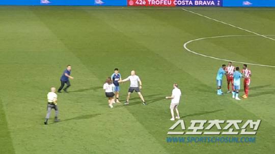 손흥미능 75분을 뛰었다. 경기가 끝났다. 손흥민은 피치 위로 올라갔다. 런던에서 응원와준 팬들에게 다가가 인사를 건넸다. 그리고 라커룸으로 돌아가고 있었다. 잠시 흠칫 놀랐다. 바로 한 여성팬이 경기장 안으로 난입했기 때문. 서양인 여성팬은 그대로 손흥민을 향해 돌진했다. 옆에 있던 관계자들이 여성을 저지하려 했다. 이 팬은 저지의 손길을 뚫고 손흥민 앞으로 왔다. 사인을 요청했다. 손흥민은 흔쾌히 응했다. 팬이 입고 있던 유니폼 상의에 사인을 해주었다. 사인을 받은 팬은 관계자의 호위(?) 아래 뿌듯하다는 제스처와 함께 경기장 밖으로 나갔다.