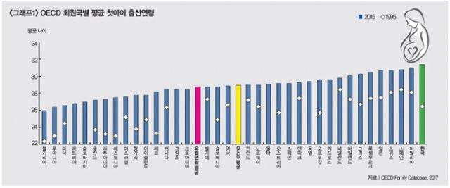 여성의 출산연령 증가는 이미 세계적 현상이다. 경제협력개발기구(OECD) 회원국은 대부분 여성의 평균 출산연령이 30세를 넘어섰다. 거의 모든 OECD 회원국에서 20대 출산율이 1970년대에 비해 대폭 줄어든 데 반해, 30대 출산율은 오히려 높아졌다. 호주, 덴마크, 핀란드, 독일, 뉴질랜드, 노르웨이, 영국은 30대 초반 출산율이 다른 연령대 출산율보다 높다. 한국에서도 30대 중반 혹은 후반에 엄마가 되는 것이 더는 드문 일이 아니다. 특히 한국의 평균 첫아이 출산연령은 31.4세로 OECD 회원국 중 가장 높은 것으로 나타났다(그래프1 참조).