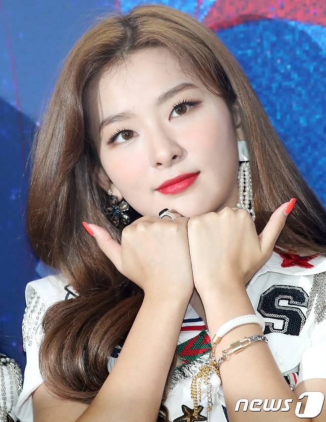 (서울=뉴스1) 권현진 기자 = 레드벨벳(Red Velvet) 슬기가 5일 오후 서울 SK올림픽핸드볼경기장에서 열린 두 번째 단독 콘서트 ‘레드메어(REDMARE)’ 기자회견에 참석해 포즈를 취하고 있다. 2018.8.5./뉴스1