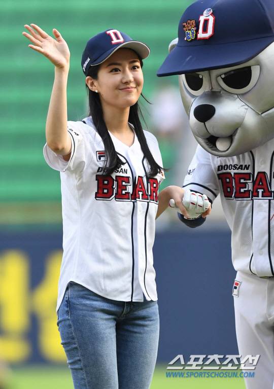 2018 KBO리그 한화 이글스와 두산베어스의 경기가 7일 서울 잠실야구장에서 열렸다. 경기전, 2018 미스코리아 미 박채원이 승리기원 시구를 하고 있다.