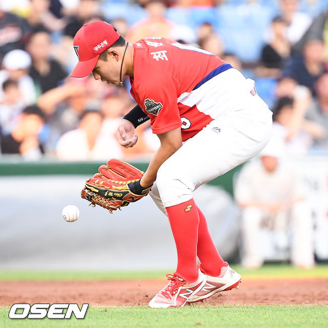 김기태 감독은 7일 고척 넥센전에 앞서 취재진에게 내야수 최원준(21)의 활용법을 두고 이야기를 꺼냈다. 유망주 최원준은 내외야를 가리지 않고 멀티 포지션을 소화하고 있다.