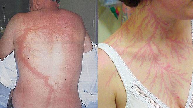 벼락 맞은 사람들은 마치 문신 같은 비슷한 상흔을 몸에 가지고 있다.
