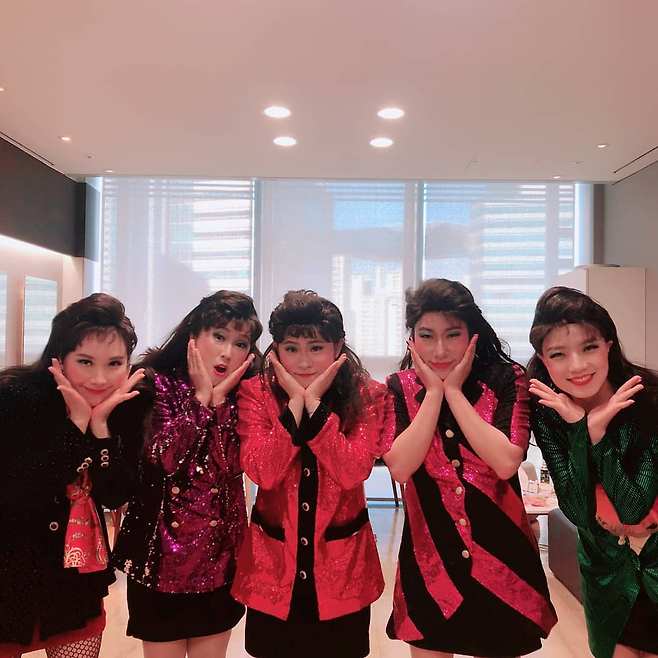개된 사진 속 셀럽파이브 멤버들은 무대 의상을 입고 꽃받침 포즈를 취하고 있다.