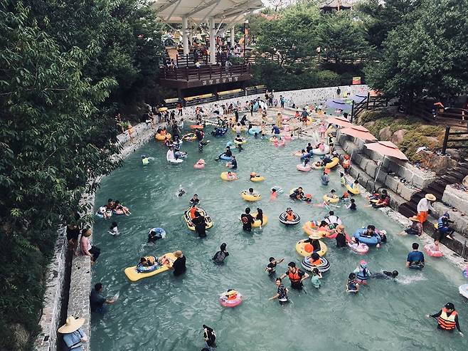 | ▲ 월출산 기찬랜드 어마어마한 규모의 계곡 풀장. 물이 엄청 차갑고 시원하다 |