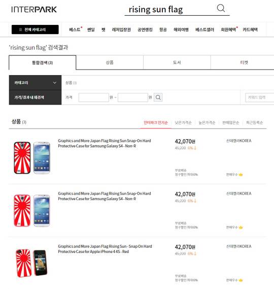 또한 그는 "검색창에 'Rising sun flag'로 검색한 결과 쿠팡 1건, 인터파크 3건, 쿠차 3건, 쇼핑하우 4건 등 핸드폰 케이스 및 공책 등 다양한 상품이 판매되고 있었다"고 덧붙였다.