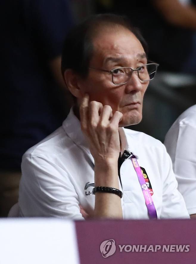 (자카르타=연합뉴스) 홍해인 기자 = 15일 오후(현지시간) 인도네시아 자카르타 겔로라 붕 카르노(GBK) 농구장에서 열린 2018 자카르타-팔렘방 아시안게임 여자농구 A조 예선 남북 단일팀과 인도네시아의 경기에서 인도네시아 김동원 코치가 선수들의 경기 모습을 지켜보고 있다.