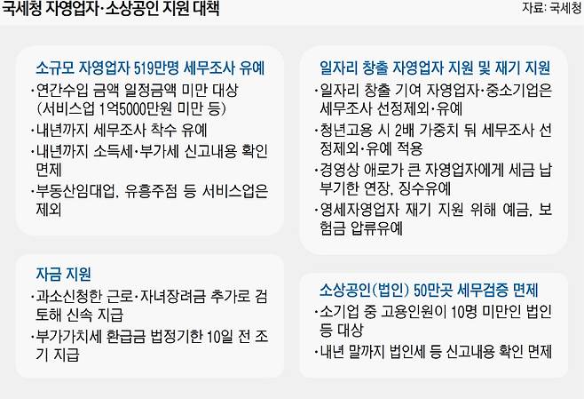 정부가 자영업자와 소상공인의 어려움을 덜어주기 위해 국세청 세무조사 면제와 사후검증 면제 카드를 꺼냈다.