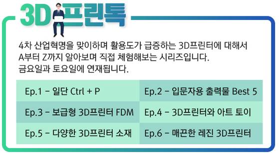 다음 에피소드에서는 3D프린터에 사용되는 다양한 소재에 대하여 알아보겠습니다.