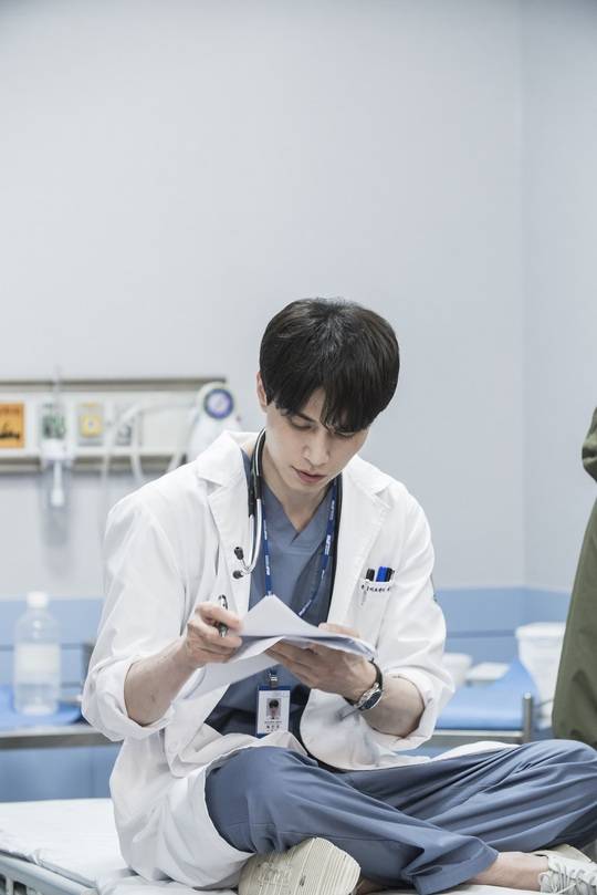 공개된 사진 속 카메라 밖에서도 실제 촬영을 방불케 하는 배우들의 에너지가 고스란히 전해진다. 그 누구보다 의사 가운이 익숙한 이동욱은 어디에서든 자리를 펴고 앉아 대본을 읽고 또 읽는다. 열심히 필기까지 하며 눈을 떼지 않는 이동욱의 자석 눈빛이 현장 분위기를 달군다. 대본을 읽어 내려가는 조승우의 묵직하게 가라앉은 눈빛에서는 그가 보여주는 연기와는 또 다른 날 선 카리스마가 느껴진다. 홍종찬 감독과 사소한 디테일까지 상의하는 원진아의 부드럽지만 강한 열정과 모니터하는 이규형의 진지한 표정 모두 현장의 온도를 뜨겁게 올린다.