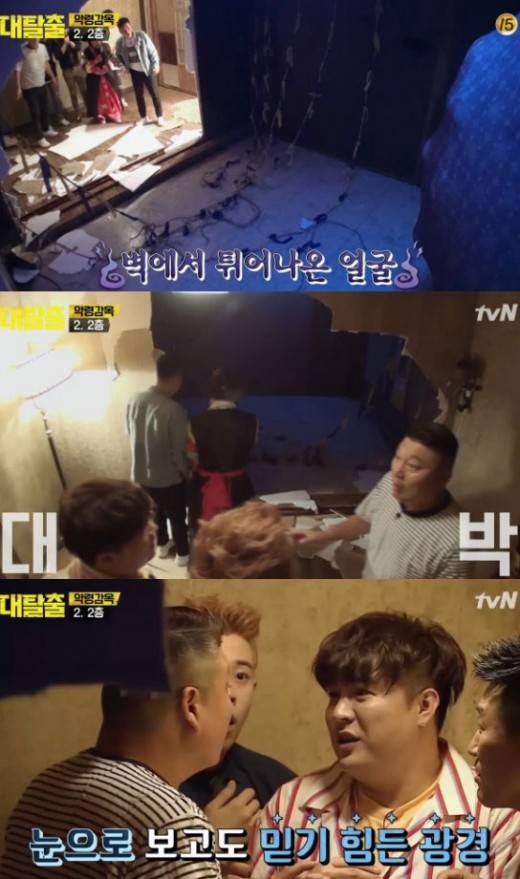 '대탈출' 강호동, 벽에서 튀어나온 얼굴 형상에 화들짝 "영화 같아"