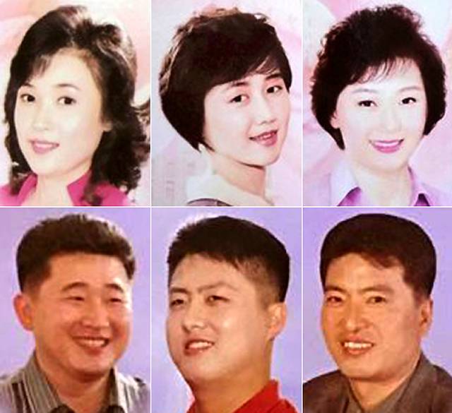 | 北서 권장되는 헤어스타일 북한에서는 남녀별로 15개의 헤어스타일이 허용된다. 윗줄은 파도형, 단발형, 구름형이고 아랫줄은 채양(차양의 북한어)형, 축포형, 날개형이다(왼쪽부터). 평양=AP 뉴시스 |