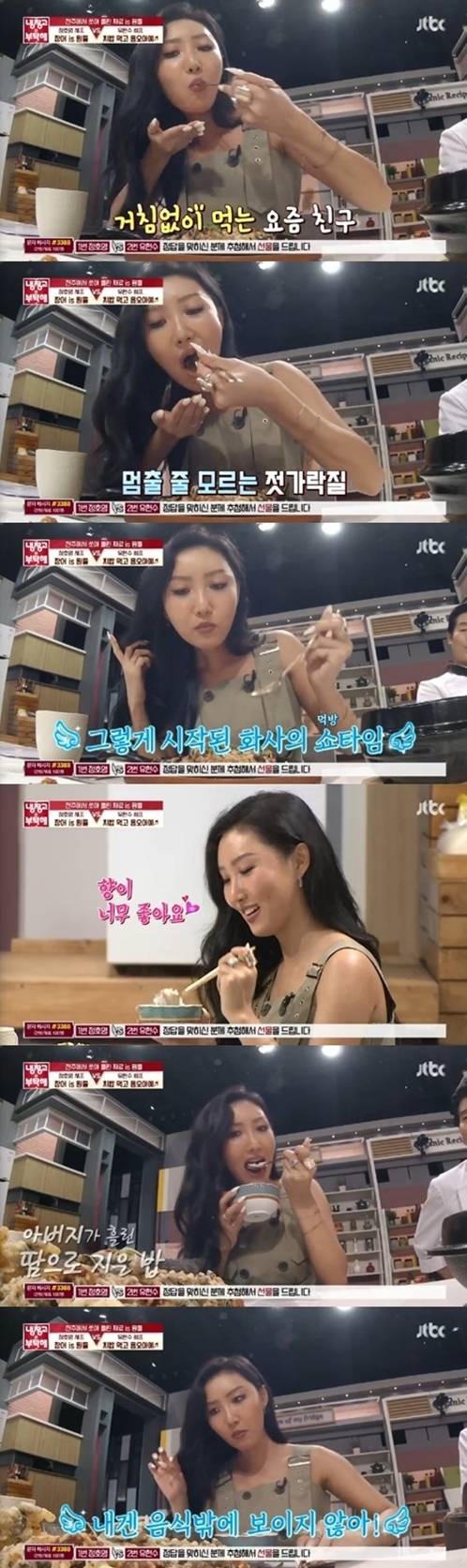 화사의 냉장고 안 재료를 이용해 정호영 셰프는 장어 요리를 만들었다. 또 유현수 셰프는 치밥을 요리했다. 화사는 정호영과 유현수가 만든 음식으로 폭풍먹방을 보여줬고, 두 셰프의 대결 결과 정호영 셰프가 승리했다.