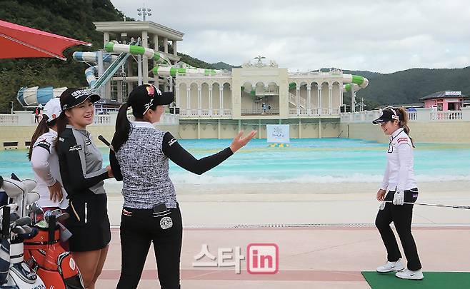 22일 강원도 정선에 위치한 하이원 컨트리클럽(파72/6,495야드)에서 2018시즌 하반기 세 번째 대회 '하이원리조트 여자오픈 2018'(총상금 8억 원, 우승상금 1억6천만 원)을 앞두고 공식 포토콜이 열린 가운데, 하이원 워터월드 파도풀에서 70미터 거리에 위치한 튜브에 공을 집어 넣는 포세이돈 웨이브 챌린지 샷 대결이 펼쳐졌다.