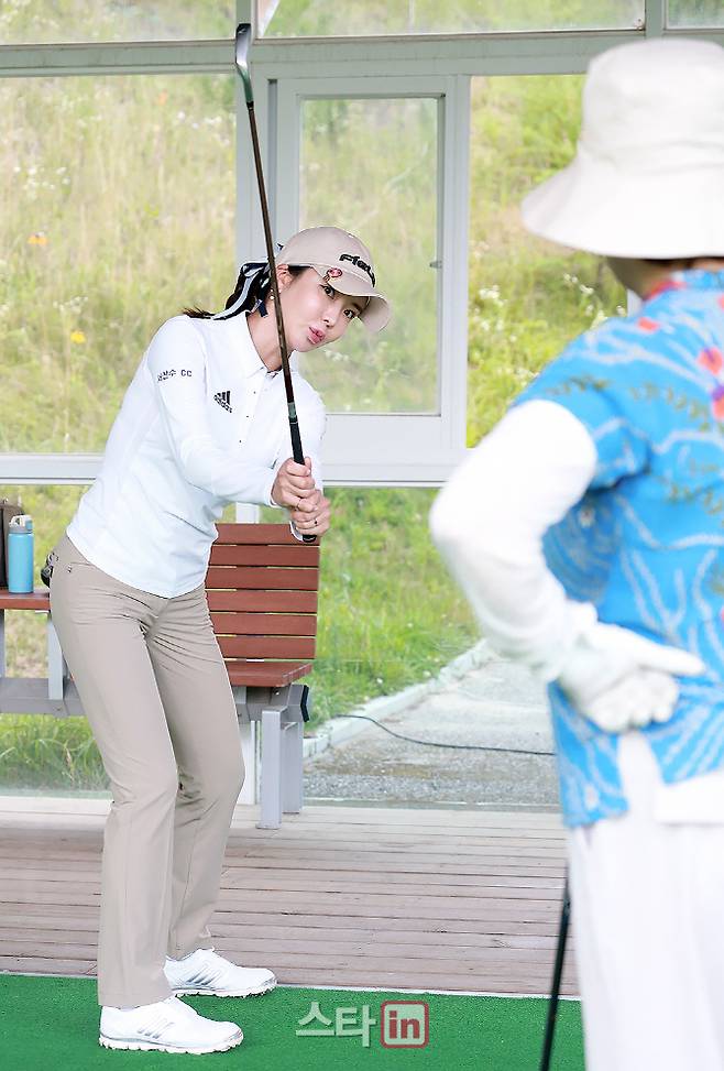 [이데일리 골프in 정선(강원)=박태성기자] 22일 강원도 정선에 위치한 하이원 컨트리클럽(파72/6,495야드)에서 2018시즌 하반기 세 번째 대회 '하이원리조트 여자오픈 2018'(총상금 8억 원, 우승상금 1억6천만 원)을 앞두고 아마추어 레슨을 진행했다. 안신애(28)와 박보미(24.하이원리조트)가 일일 티칭프로로 레슨을 진행했다. 안신애가 레슨을 하고 있다.