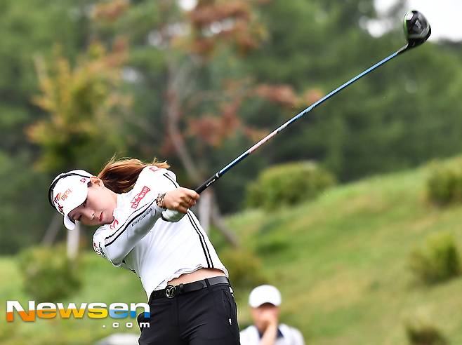 이날 김자영이 11번홀에서 드라이버 티샷을 구사하고 있다.