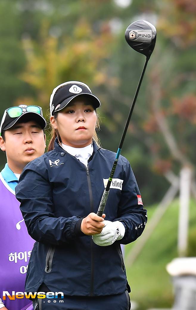 이날 이소영이 11번홀에서 드라이버 티샷을 구사하고 있다.