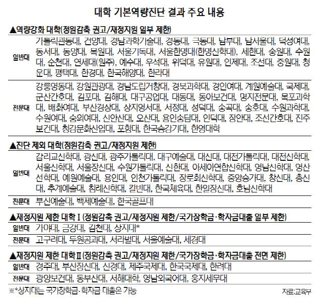 진단제외·재정지원제한 대학들
